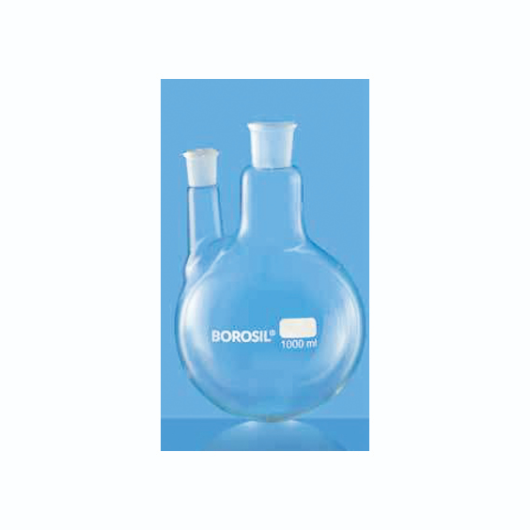 The two parallel necks allow for simultaneous use of accessories like condensers, thermometers, or addition funnels, making it ideal for controlled reactions and distillation processes. Widely used in organic synthesis, pharmaceutical development, and academic research, this flask supports complex experimental procedures with enhanced flexibility and safety.
